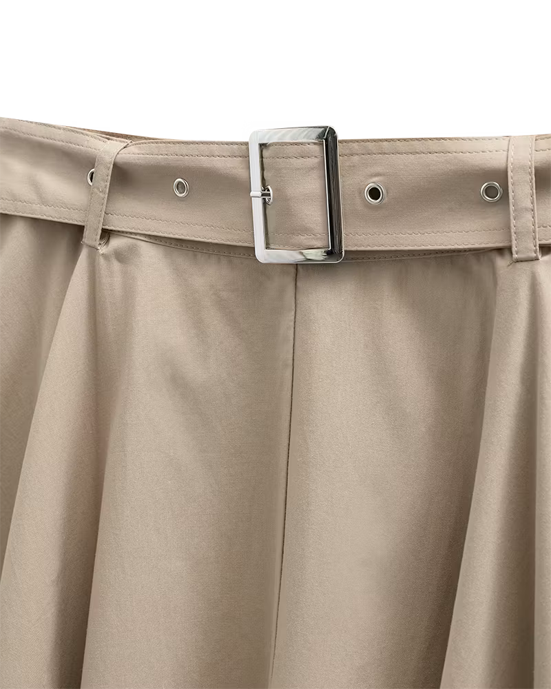 Kjol i ett härligt material. Kjolen har en enkel silhuett med veck i den vida kjolen, dold dragkedja bak samt ett skärp med dekorativt spänne.