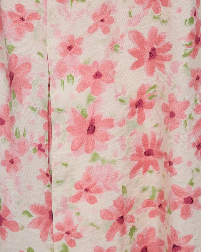 En härlig sommarklänning i ett mjukt material. Klänningen har en enkel silhuett med lös passform, långa ballongärmar med resårband, V-ringning med rynkad effekt.