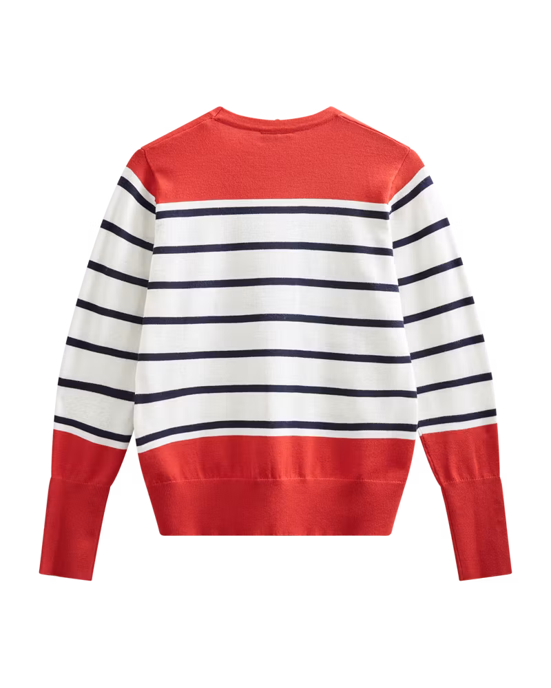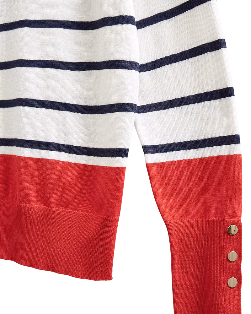 FQkatie Tröja rand 499.95 kr Randig XL XXL I lager Lägg i korgen Produktbeskrivning Recensioner Tröja i ett mjukt, finstickat material. Tröjan har en enkel silhuett med rundad halsringning, ribbstickad mudd, lös passform och långa ärmar med slits och knappdetalj i guld för en fin touch.Material: 82% Viskos 16% Polyamid 2% Elastan.Passform: normal.