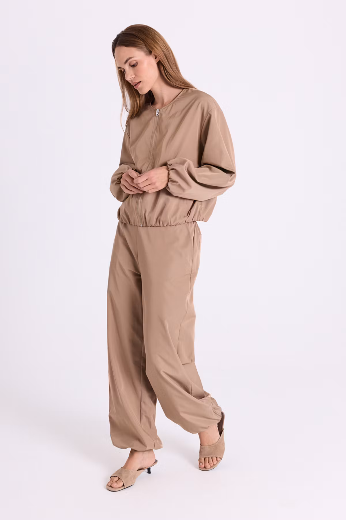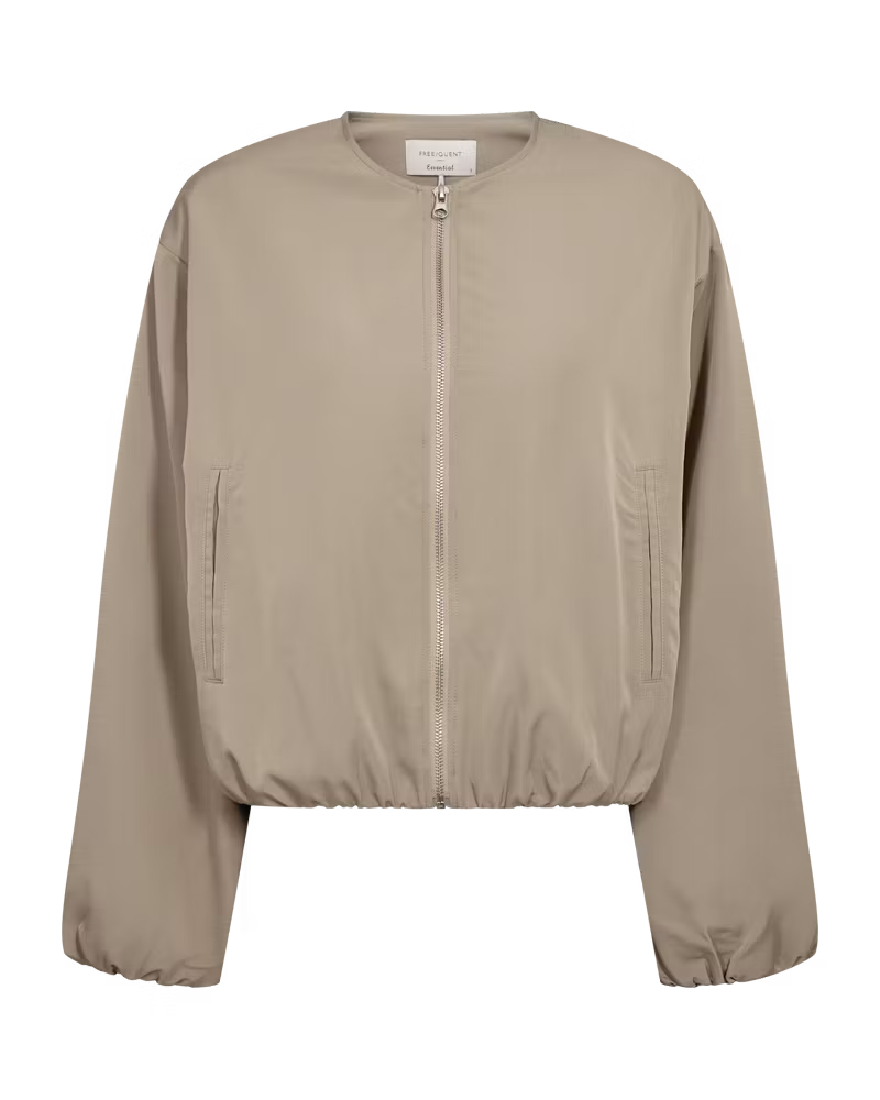 Jacka från i ett mjukt material. Jackan har en enkel silhuett med rundad halsringning, dragkedja, fickor fram och resår i nederkanten och i de långa ärmarna. Kan med fördel användas istället för kofta eller kavaj och när vädret tillåter fungerar den fint som ytterplagg.